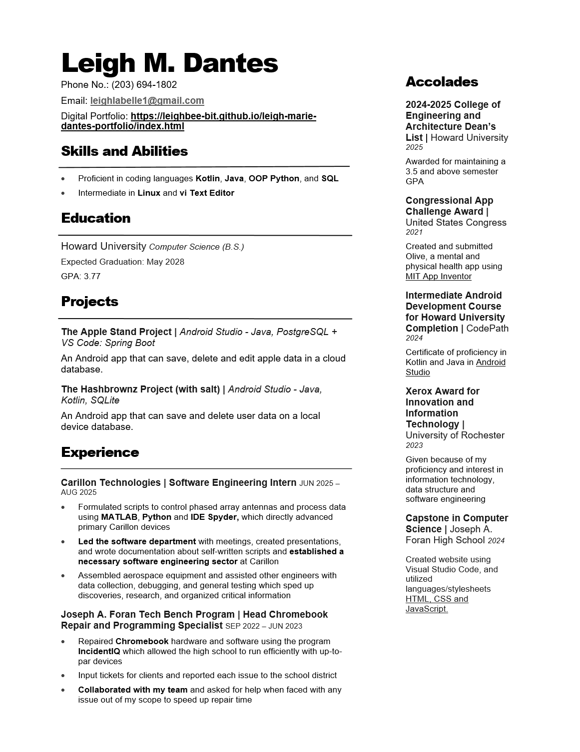 Computer Science major at Howard University